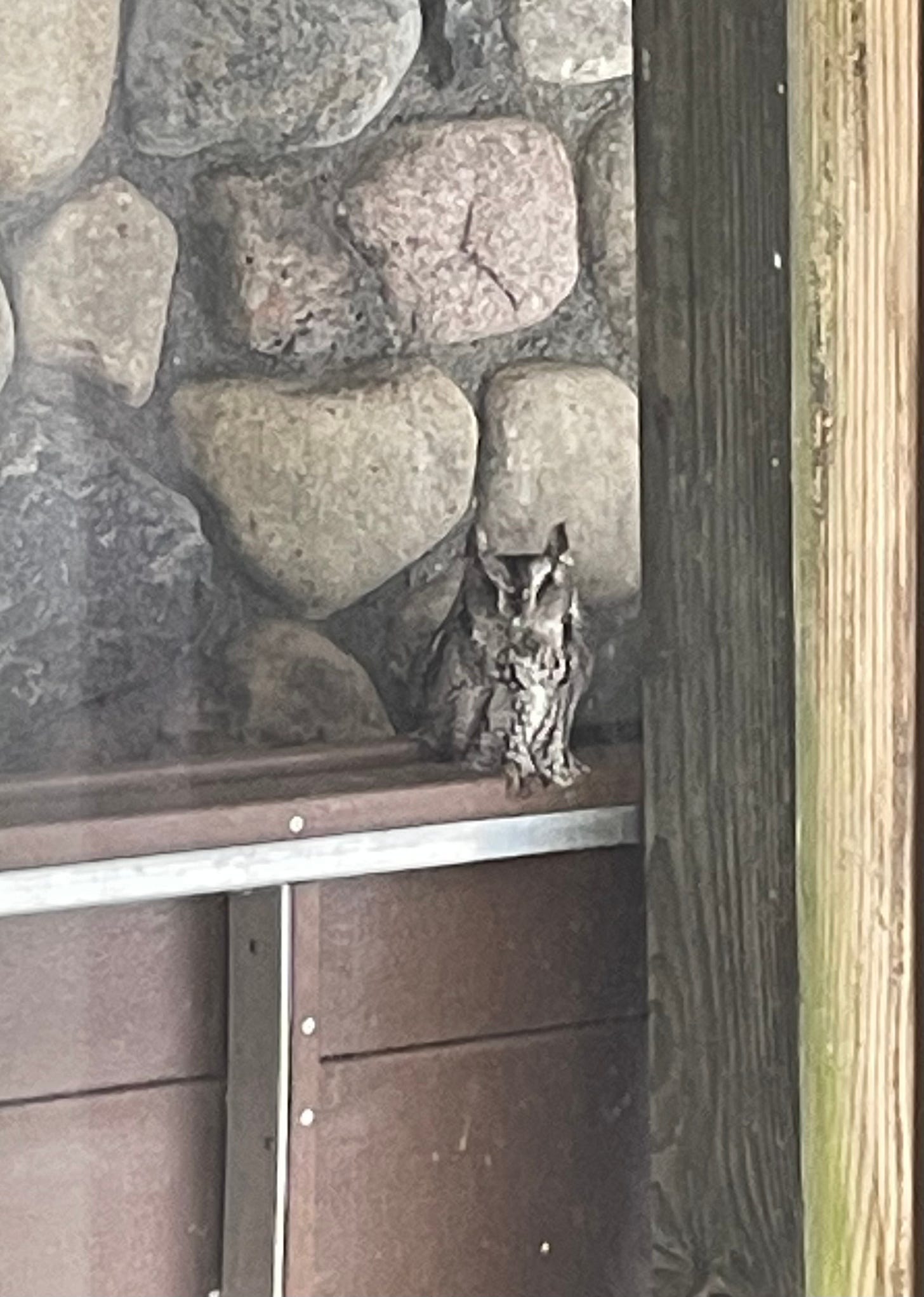 I’m sharing a heavily cropped photo of an eastern screech owl (so it might be little blurry) that took shelter from the frigid temperatures and winds by roosting under our deck this week while also being somewhat camouflaged by the stonework on the walls. Is it worried? Is it brave? Is it just reserving energy in this sheltered spot for its nighttime flights for food? I don’t know the answer to those questions, but I found some lovely quotes about birds that help us think through and respond to our own tough situations: